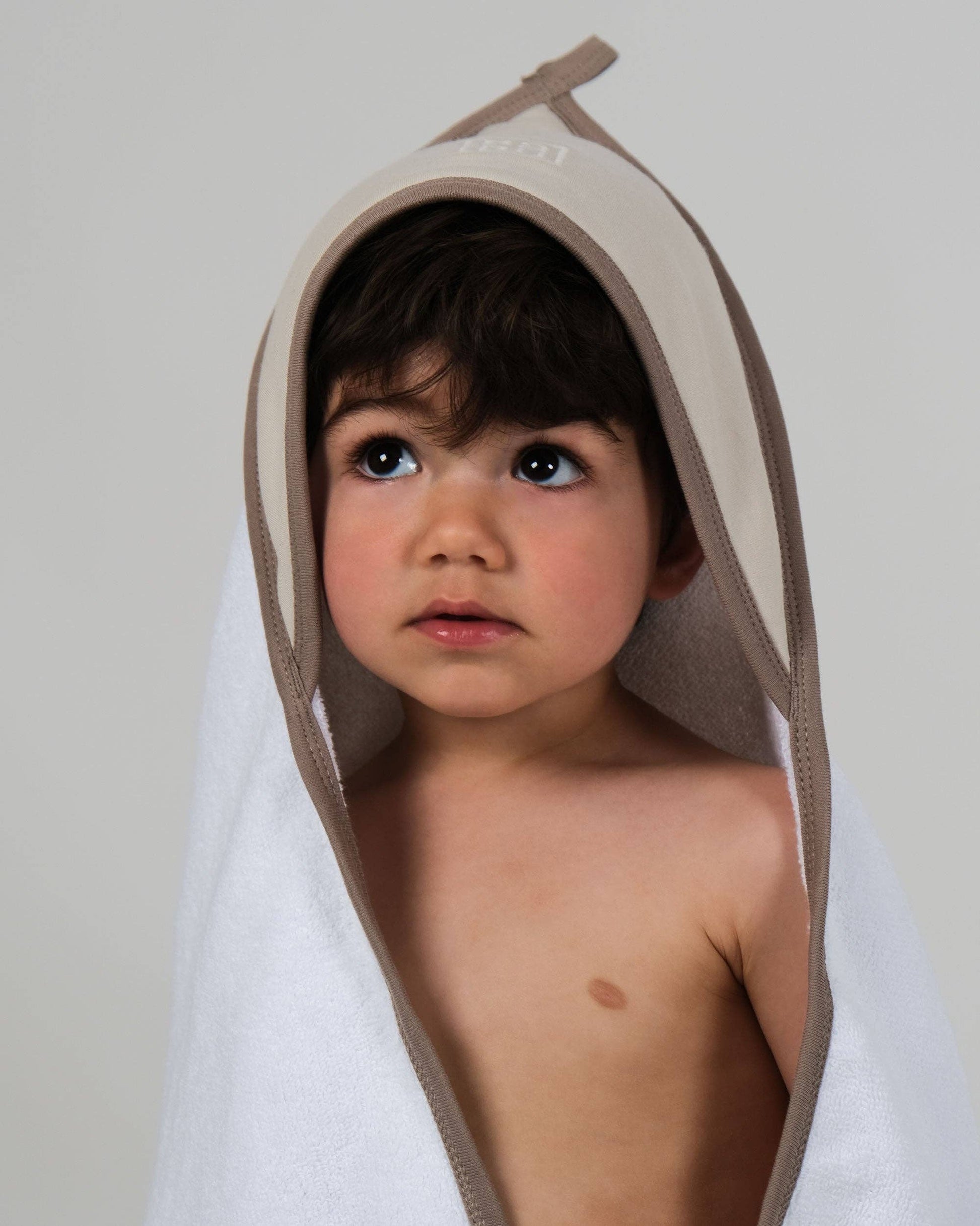 - Babu organic terry hooded baby towel is made from soft and absorbent terry towelling and trimmed with coloured cotton rib and stitching. Babu bathing range is gentle on little faces and bodies. Perfect for bundling up baby after a bath.