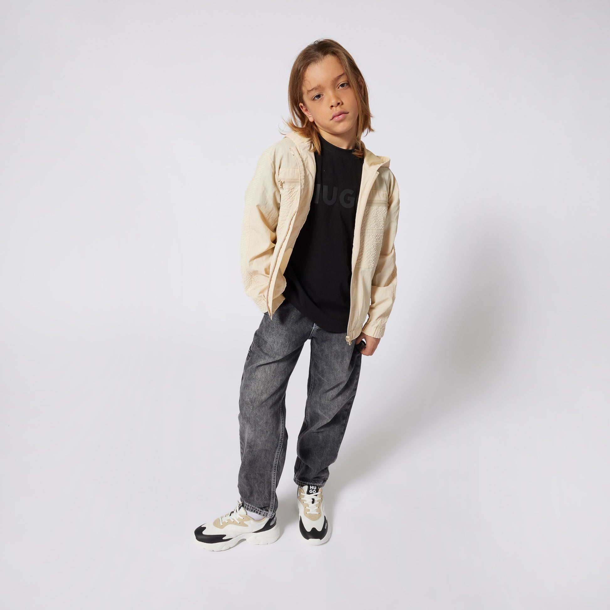 Express yourself! HUGO introduces its trend-setting, rule-breaking style to children for the very first time, with the reveal of the new HUGO Kids. A sporty aesthetic is evident throughout, with branded cycling shorts, cropped hoodies and logo leggings for girls, and drawstring shorts, caps, and zip-through jackets for boys. Many of the pieces carry the HUGO Responsible label, including a wide variety of organic cotton tees, while hoodies and sweatpants are delivered in cozy French terry woven with more than 80% organic cotton. The brand’s instantly recognizable red logo label also features prominently on seasonless essentials ranging from tees and polos, to hooded jackets.